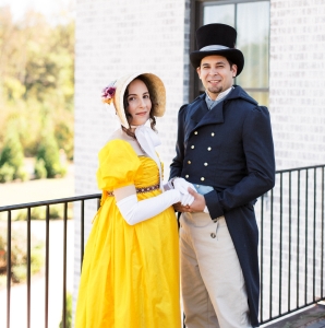 It is not unusual for me to run into a “sewing dilemma” where I am not sure exactly on best construction to achieve the vision that sits in my mind. Such was the case with this particular gown you see here. This is a 1910’s evening gown I created for a dinner at The Angus Barn in Raleigh, North Carolina where they do a recreation of the last meal on the titanic. My husband and I took pictures in downtown Durham, North Carolina before attending the dinner, and everyone thought we had just gotten married and were honking their car horns yelling “CONGRATULATIONS!”. We went along with it and gladly accepted their well wishes!